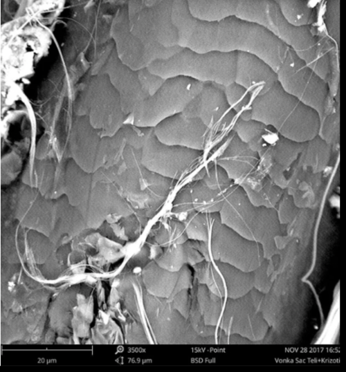 4- Elektron mikroskopide Saç teli üzerinde krizotil asbest