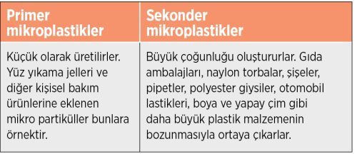 Mikroplastikler polietilen, polipropilen, polivinil, polistiren gibi polimerlerden oluşur ve çevresel bozunmayla oluşur. 1 nanometre ile 5 milimetre arası büyüklüklerde herhangi bir plastik parçacığı mikroplastik olarak tanımlanmaktadır. Boyutlarına göre mikroplastik (MP) ve nanoplastik (NP) olarak da sınıflandırılmaktadırlar. Bu küçük parçacıklar okyanus derinliklerinden Everest Dağı zirvesine ve hatta tüm insan vücuduna kadar yayılma göstermektedir. Primer ve sekonder mikroplastikler olarak iki kaynağı mevcuttur (Tablo 1). Suda, toprakta ve havada bulunabilirler. 2020 yılında 2.7 milyon ton mikroplastiğin çevreye sızdığı tahmin edilmektedir. 2040 itibarıyla bu miktarın iki katına çıkması beklenmektedir.