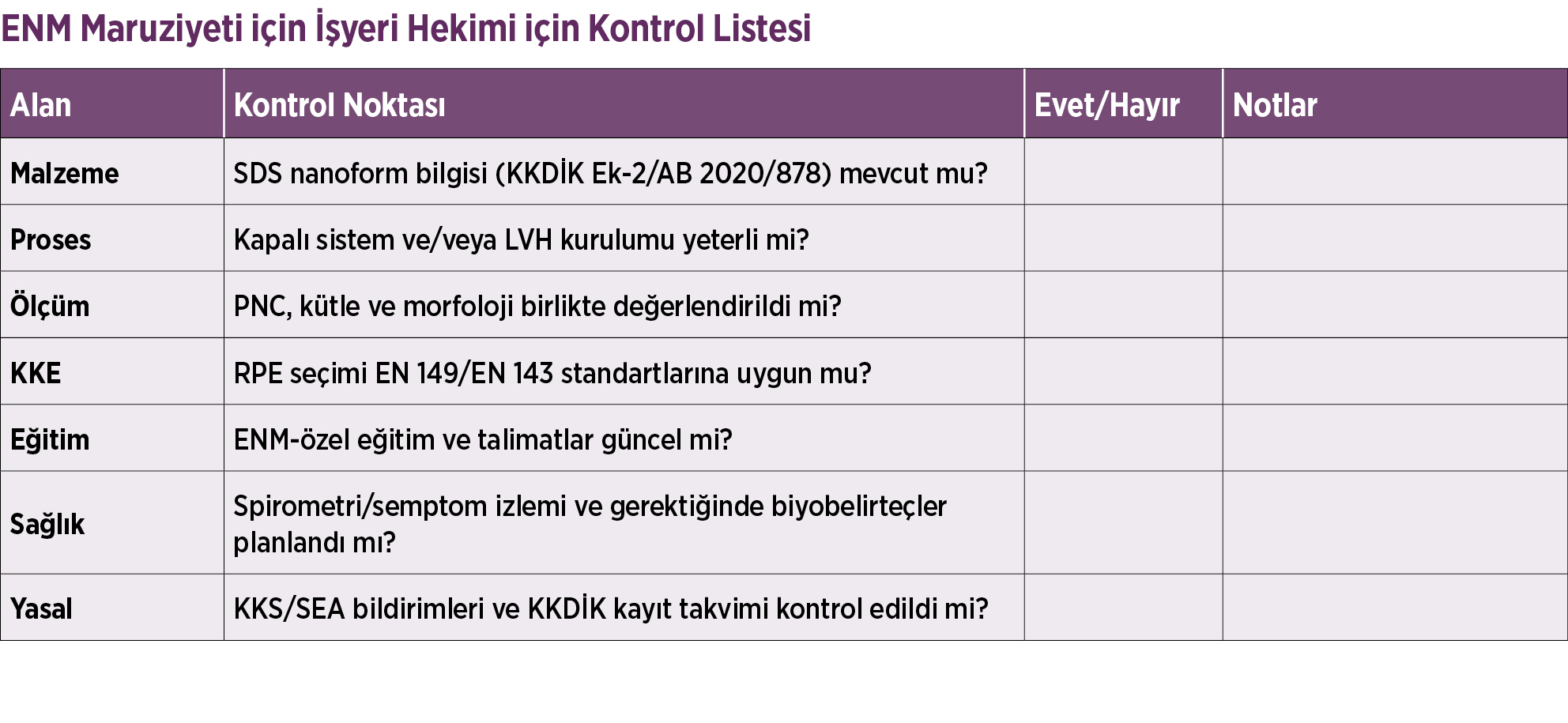 (eliminasyon/ikame kapalı sistem/yerel havalandırma idari kontroller KKE) temelinde ENM’lere özgü önlemler planlanmalıdır.