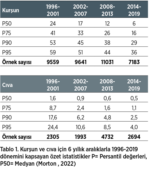 Biyolojik izlemin sayesinde maruziyeti erken tespit etme ve önleme şansı bulunabilir. Maruziyet seviyesinin ve sağlık risklerinin değerlendirilmesi, kişisel korunma ekipmanlarının etkinliğinin değerlendirilmesi ve biyolojik maruz kalma sınır değerlerinin aşılıp aşılmadığının belirlenmesi gibi avantajları olacaktır. 20 yılı aşkın bir süre boyunca toplanan biyolojik izleme verilerinden mesleki maruziyet eğilimlerini değerlendirmek amacıyla yapılmış bir çalışmada 8000 şirketteki 120 000 çalışandan alınmış 950 000 örnek incelenmiştir (Morton , 2022). Veriler, rapor edilen zaman dilimi içinde (1996 – 2019) Avrupa, Amerika Birleşik Devletleri ve Büyük Britanya’da bazı regülasyonların uygulamaya konduğu kurşun, cıva, benzen ve heksametilen diizosiyanat maruziyetleri ile ilgili tüm biyolojik izleme sonuçları için derlenmiş ve yıllar içinde tüm maruziyetlerde anlamlı azalmalar saptanmıştır. Bu çalışmadan elde edilmiş sonuçlara örnek olarak kurşun ve cıva konusunda elde edilmiş ilerlemeyi Tablo 1’de görebilirsiniz.